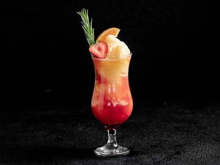 Fresh Pineapple, Peach Smoothie, Fresh Orange Juice, Grenadine
